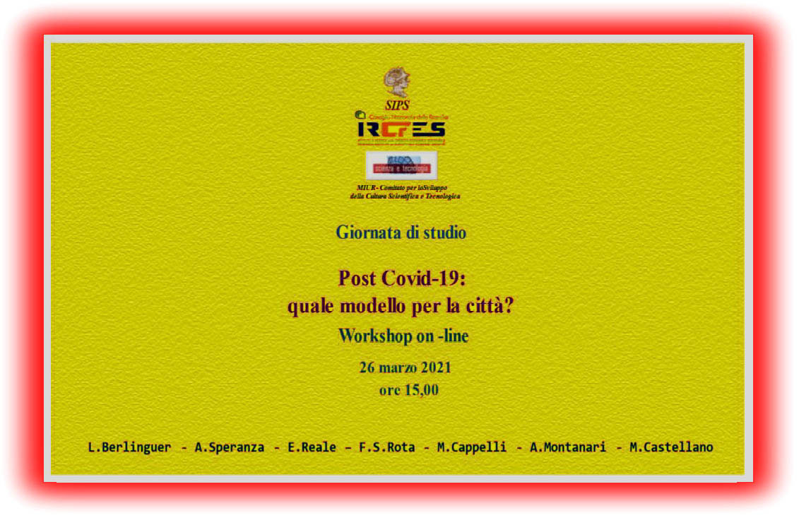 Giornata di studio "Post Covid-19: quale modello per la città" 26 marzo 2021 ore 15:00 Link del workshop online: https://www.youtube.com/watch?v=qZxo2QAR9bE&ab_channel=SIPSDidattica